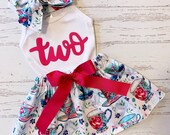 Tea for Ii Birthday Outfit for Girls, Tea Party Skirt, Birthday Shirt 2, Applique Shirt, Vintage Tea Loving cup, Floral Skirt